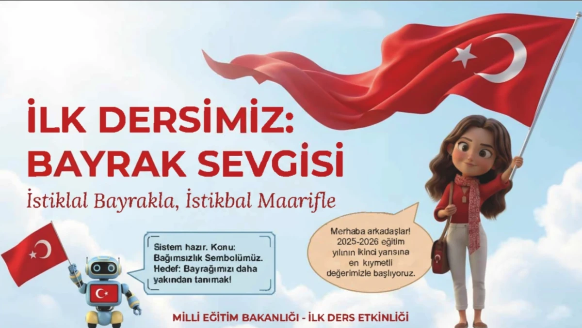 2025- 2026 eğitim öğretim yılı ikinci döneminin başlayacak olmasıyla, Türkiye genelindeki tüm okullarda “İlk Dersimiz: Bayrak Sevgisi” konusu işlenecek. Milli Eğitim Bakanlığı’nın Türkiye Yüzyılı Maarif Modeli vizyonu doğrultusunda hayata geçirilen bu uygulama, öğrencilere millî birlik, beraberlik ve aidiyet bilincini kazandırmayı amaçlıyor.