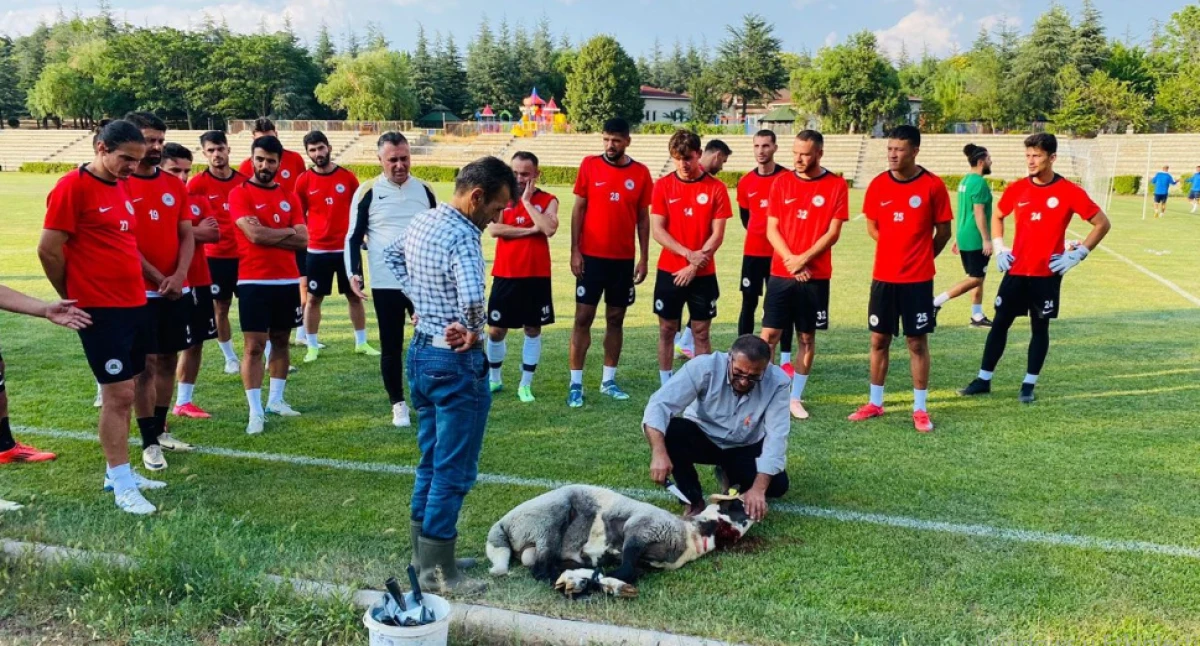 Ünisersite sahasında yapılan idmanda Yeni sezonun hayırlı olması temennisiyle kesilen kurban sonrası dualar edilerek takımın başarı dilekleri paylaşıldı.