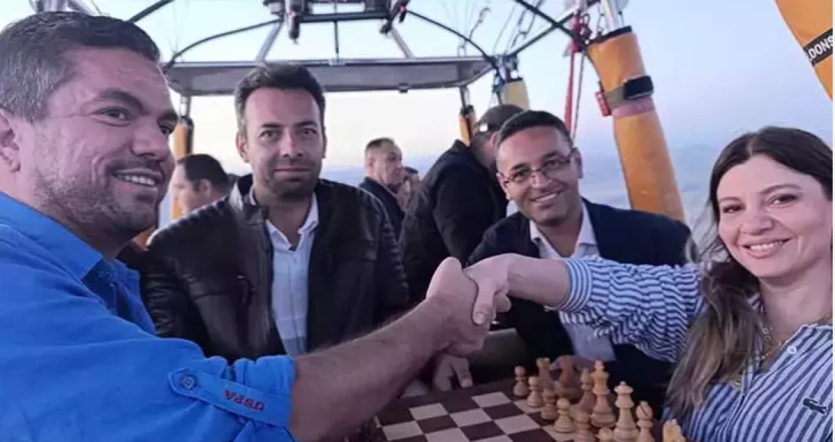 Ürgüp ilçesinde Nevşehir Gençlik ve Spor İl Müdürlüğü, Türkiye Satranç Federasyonu, Ürgüp Belediyesi ve Türkiye Sigorta Birliği iş birliğiyle düzenlenen Kapadokya Uluslararası Açık Satranç Turnuvası’nda, dünya satranç tarihinde bir ilke imza atıldı. Turnuvanın 8’inci turu öncesinde, Büyük Usta (GM) Meylis Annaberdiyev ve Uluslararası Usta (IM) Hayale İsgenderova, Kapadokya’nın atmosferinde, yerden 1500 metre yükseklikte satranç gösteri maçı gerçekleştirdi. Satranç Bölge Temsilcisi ve Turnuva Direktörü Çağrı Türkcü, organizasyona ilişkin yaptığı açıklamada, “Böylesi bir etkinlik daha önce dünyada hiç gerçekleştirilmedi. Kapadokya, tarihi ve kültürel mirasının yanı sıra artık satrançta da bir ilke imza attı” dedi.