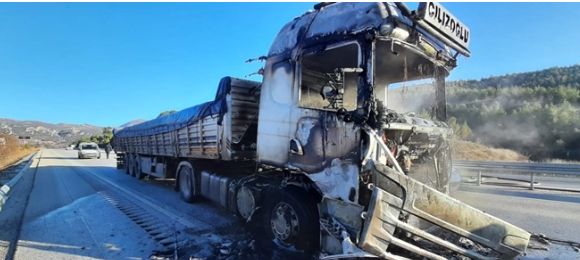 Burdur'un Çelikçi ilçesinde tır yangını meydana geldi. Edinilen bilgiye göre bugün sabah saatlerinde Çeltikçi ilçesinde Antalya istikametine giden 63 ACR 037 plakalı tır seyir halinde iken bir anda alev aldı.