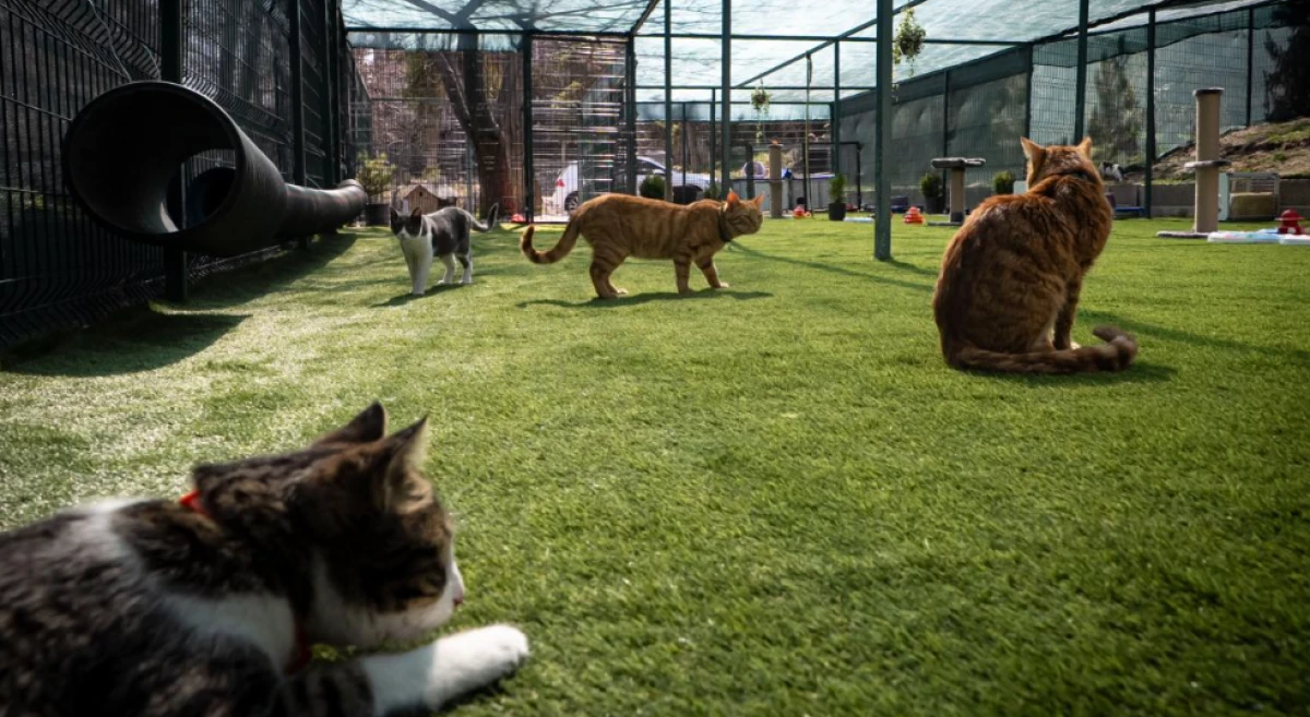 Yaşam alanındaki kedi evleri, ısı yalıtımlı ve zorlu hava koşullarına dayanıklı şekilde tasarlandı.