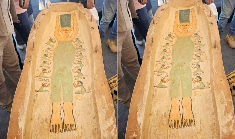Tabut, tahminlere göre 3 bin 500 yıl öncesine tarihleniyor ve Antik Mısır'da bulunan El-Ashmunein kasabasındaki baş rahibin kızı Tadi Ist'in mumyalanmış kalıntılarını içeriyor. Tabutun iç kısmında yer alan çizim de Tadi Ist'i resmediyor.