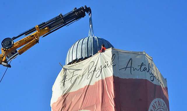 Antalya'da tarihi Saat Kulesi 90 yıl aradan sonra kubbesine kavuştu