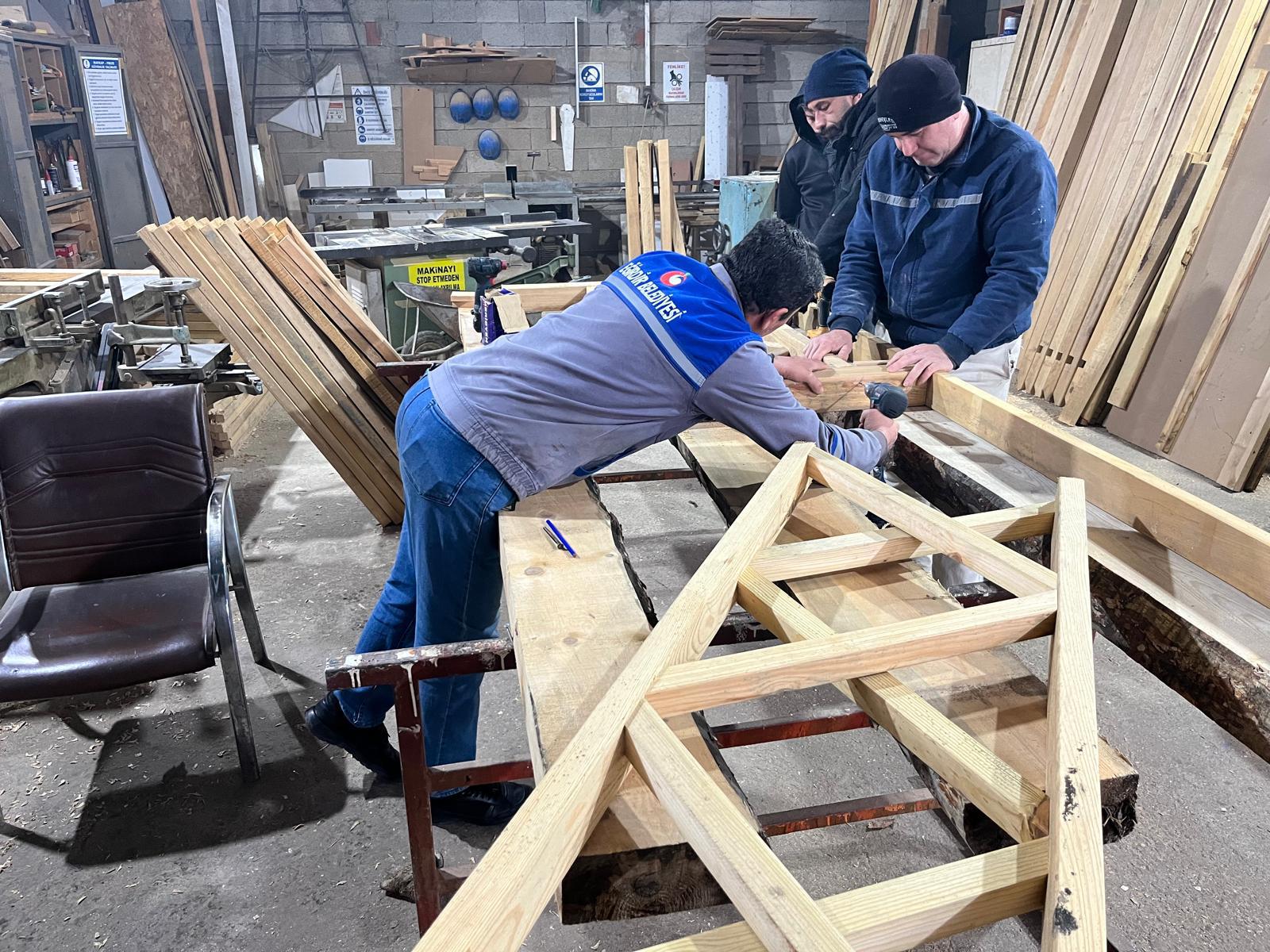 Eğirdir Belediyesi, kendi atölyelerinde gerçekleştirdiği üretim ve yenileme çalışmalarıyla hem tasarruf sağlıyor hem de ilçenin ihtiyaçlarına hızlı çözümler üretiyor. İlçenin her mahallesinde yaşam kalitesini artırmak adına çalışmalar kararlılıkla sürdürülüyor.