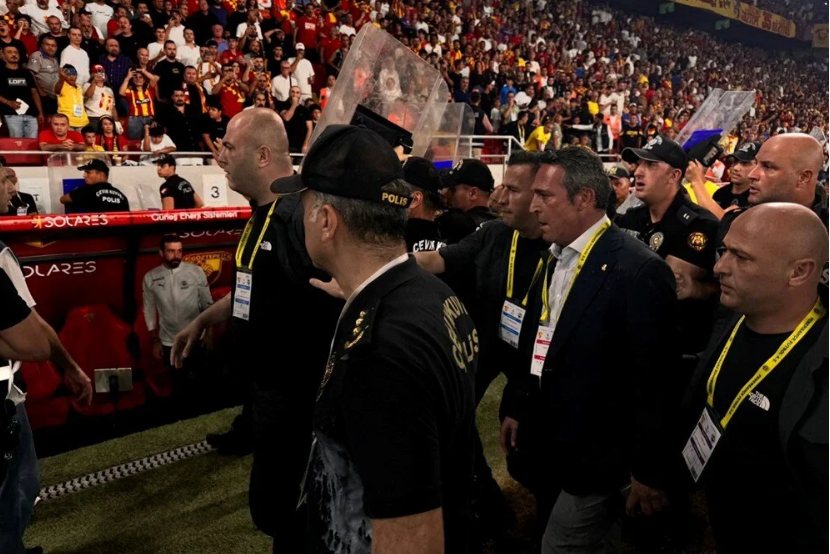 Bu gelişmelerin üzerine hakem Kadir Sağlam oyunu durdurdu ve bir süre sonra Ali Koç korumalar eşliğinde sahadan ayrıldı.