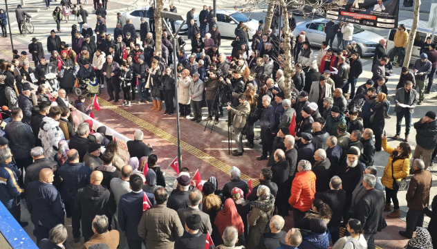 Savcı açıklamasında; “Bugün burada, şehit aileleri ve gaziler olarak yaşadığımız acıları, yüreğimizde yanan ateşi anlatmak için toplanmadık. Çünkü bir şehit annesine, oğlunun postallarına çiçek ektiren, bir şehit babasına, evladının fotoğrafı karşısında geceyi sabahlatan, şehit eşinin canının yarısını toprağa koyuşunun, umutları elinden alınan şehit çocuklarının yarım kalışının hiçbir tarifi yok. Biraz tarih konuşalım mesela; Çanakkale’yi, Kurtuluş Savaşı’nı, Sarıkamış’ı, Kıbrıs’ı ve şehitlerimizi konuşalım. Alp ve alperen olanları, önce yiğit olup şüheda olan kahramanları, sınırlarımızı nasıl çizdiğimizi, vatanın her karışının şehit kanlarıyla sulanışını konuşalım.