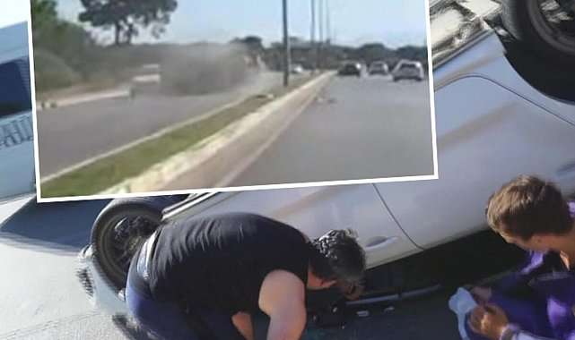İnanılmaz anlar! Takla atıp 100 metre sürüklenen otomobil kamerada
