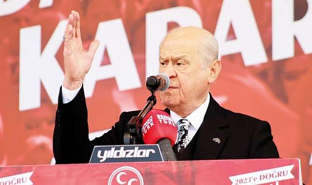 MHP Lideri, “2023’e Doğru, Aday Belli Karar Net” temalı mitinglerin yedincisini Elazığ’da düzenlerken muhalefete özetle şöyle yüklendi: “Hiçbir siyasi başarısı olmayan, hiçbir tecrübesi bulunmayan, devlet nedir bilmeyen, diplomasiye kafaları basmayan malum belediye başkanlarının isimleri tekrar ısıtılıp kamuoyuna servis edilmektedir. Cumhurbaşkanımız Sayın Recep Tayyip Erdoğan’ın acemilerle, acem oyunlarına gömülmüş basit ve basiretsiz isimlerle aynı terazide tartıya çıkartılması cumhura, cumhurun başkanlık onuruna hem saygısızlık hem de nankörlüktür. Zillet partileri çatışma ve çelişki halindedir.” RAHATSIZ OLDULAR Bir AK Parti heyetinin anayasa değişikliği konusuyla ilgili Meclis’te grubu bulunan partileri ziyaret etmesi ve bunu da bizim doğal karşılamamız anlaşıldığı kadarıyla münafıkları rahatsız etmiştir. Bizim gözümüzde PKK neyse HDP odur. Bu kesindir. Daha fazla gecikmeye meydan bırakmadan Anayasa Mahkemesi tarafından HDP’nin kapatılması da mutlak ve hukuki bir mecburiyettir. Hiç kimse HDP’yle ilgili bize parmak sallayamaz. Sallayan olursa o parmakları kırmasını çok iyi bileceğimizi hiç kimse de unutmamalıdır.”