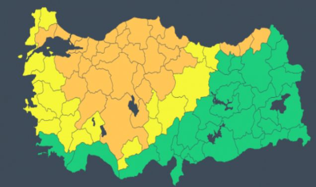 31 ile turuncu, 18 ile sarı kodlu uyarı